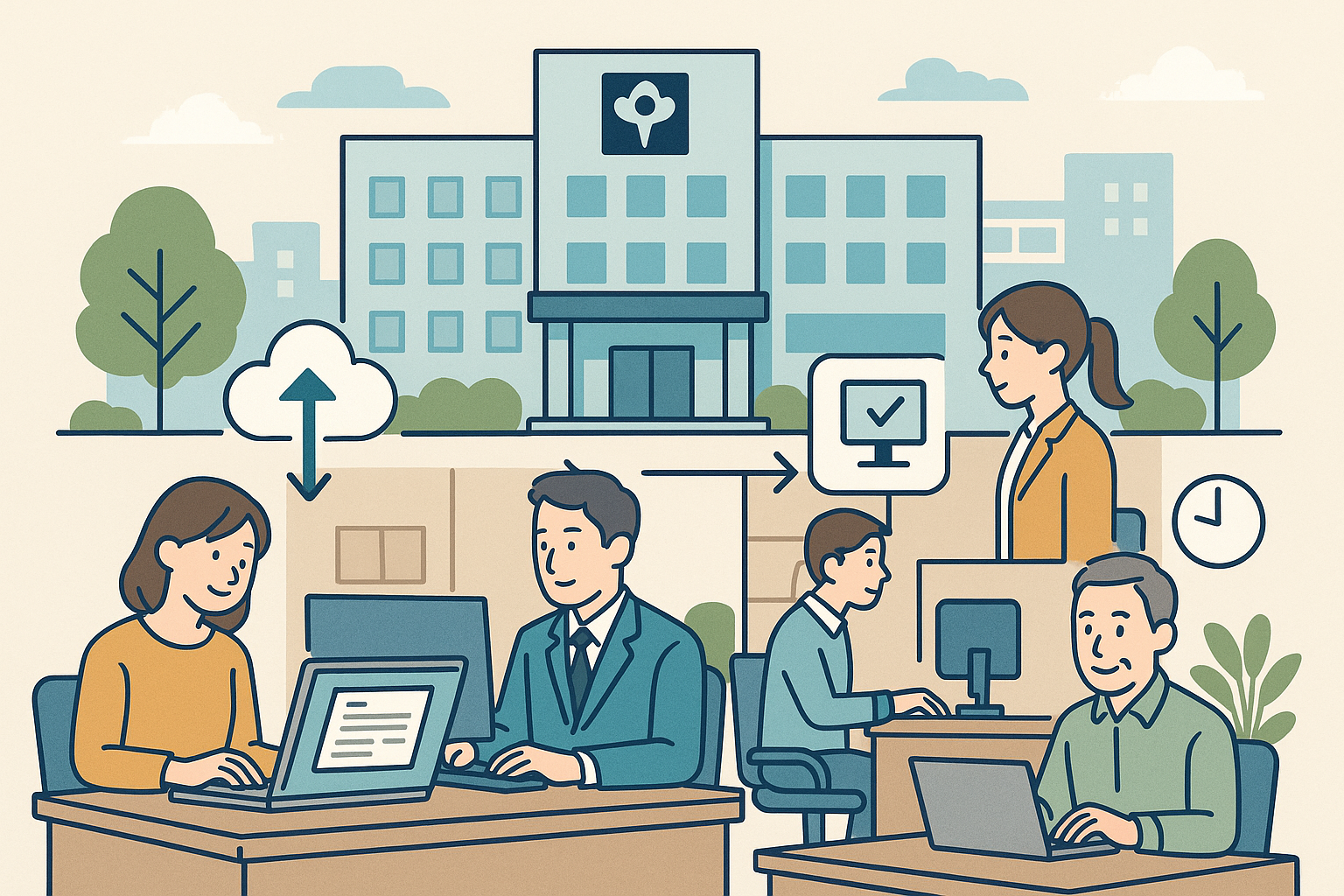 行政手続きのオンライン化と窓口業務の効率化を支援。住民の利便性向上と職員の業務負担軽減を実現。