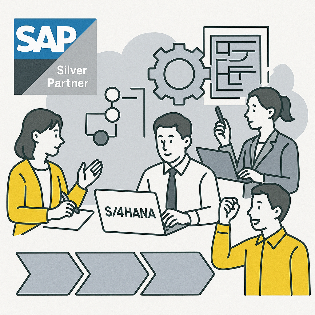 SAPシルバーパートナーとして、S/4HANAへの移行や新規導入を支援します。要件定義から設計、開発、テスト、本番稼働まで一貫してサポートします。